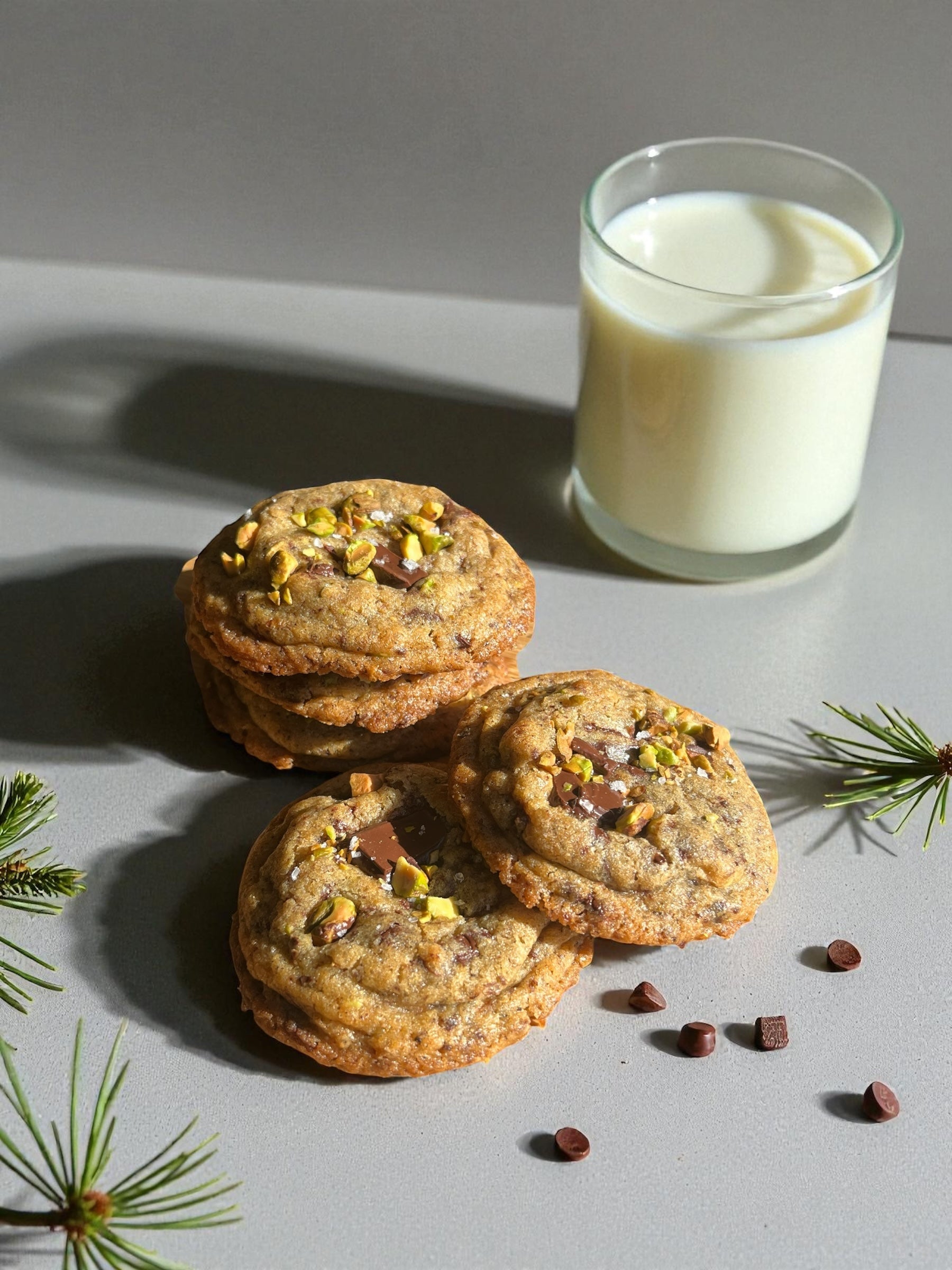 - Galletas melcochudas de mantequilla avellanada, pistachos y chocolate oscuro
