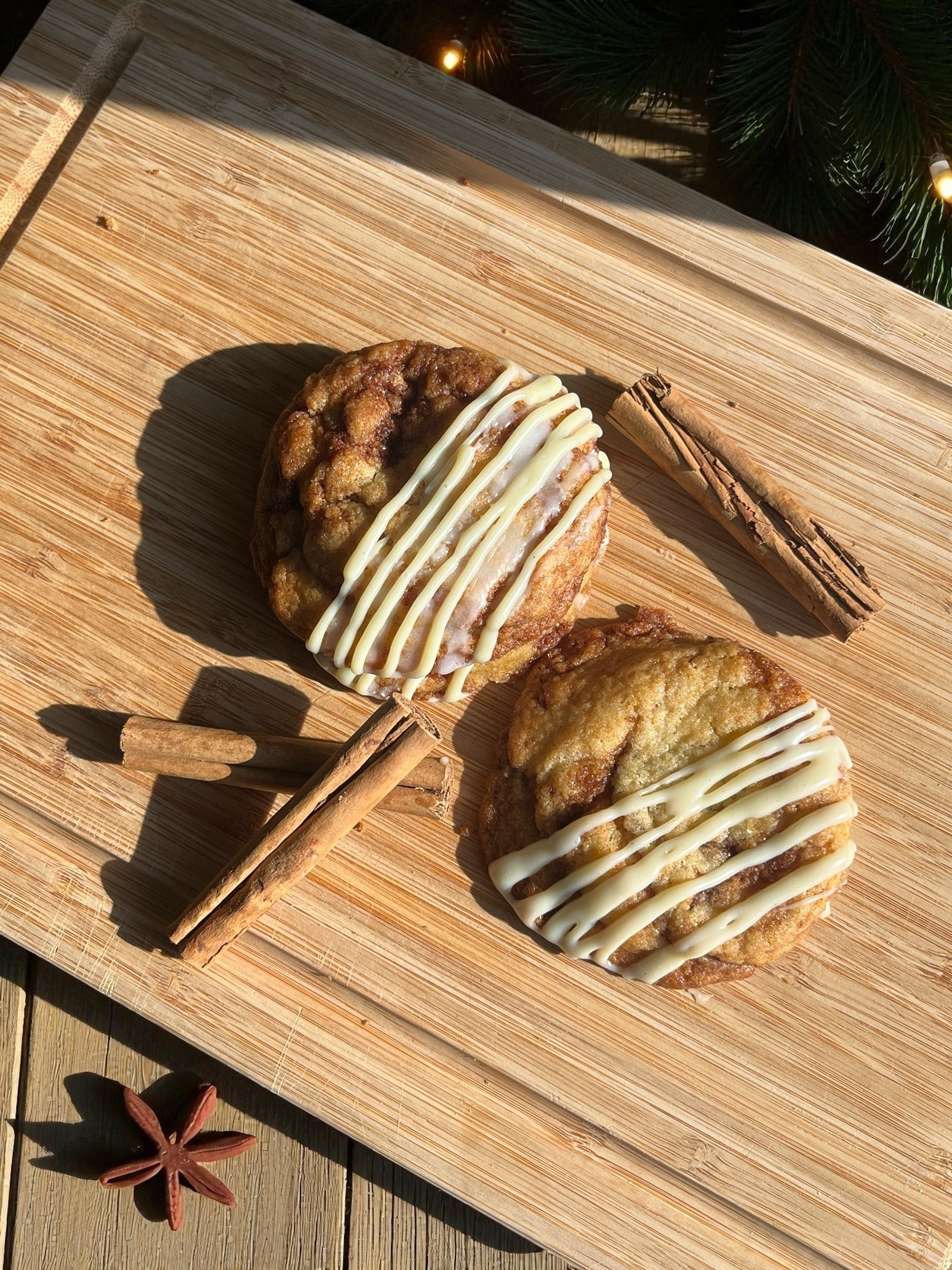 - Cinnamon swirl cookies con glaseado, inspiradas en rollos de canela